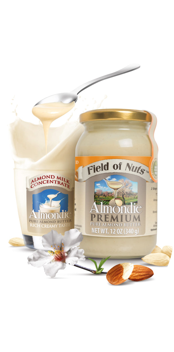 Our unique almond butter is made from raw, fresh, premium almonds that are soaked in cold water, and then go through our patented machines that peel them gently. The peeled almonds are immediately ground using a cold press process. Almondie contains absolutely no preservatives, additives or added sugar.