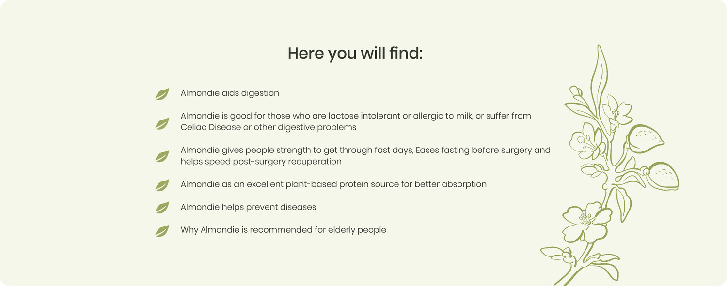 Almondie is good for those who are lactose intolerant or allergic to milk, or suffer from Celiac Disease or other digestive problems