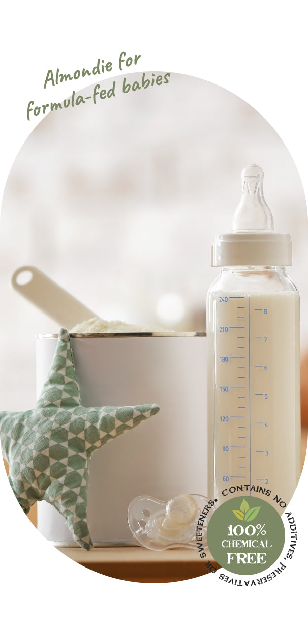 Add Almondie to your baby’s bottle for a satisfied, well-nourished, happy baby.