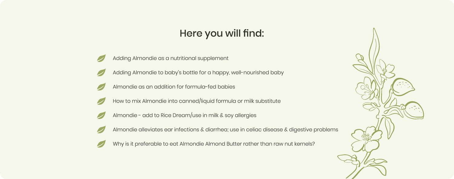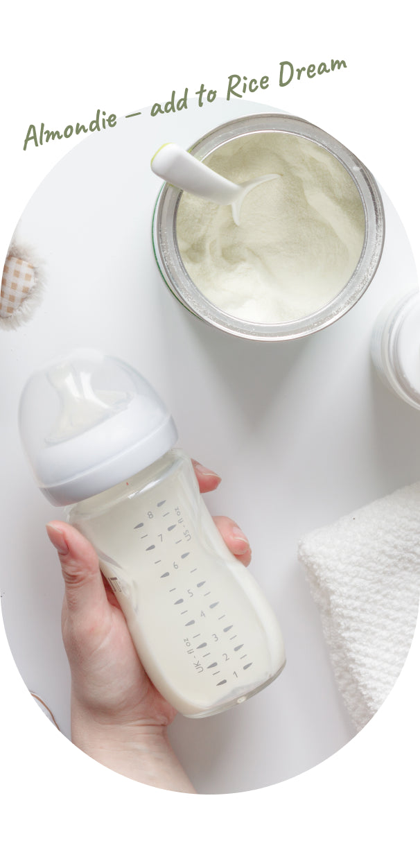 Adding Almondie to Rice Dream provides fuller nutrition and more satisfaction for your baby.