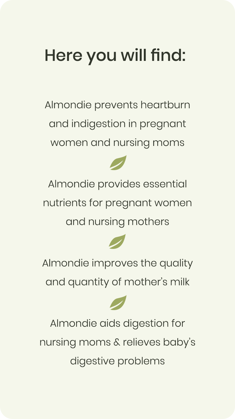 Almondie’s high calcium content is vital to proper growth and successful development of your baby’s bones and teeth.