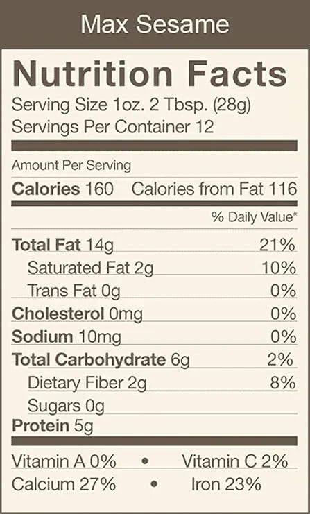 MAX Classic Sesame is made from whole, unhulled sesame seeds which contain more nutrients and soluble fiber than hulled sesame seeds. Foods which contain fiber eases digestion and help you maintain a healthy weight. Fiber also helps lower cholesterol, control sugar levels, keeps you feeling full and satisfied for a long time, and is good for your digestive health.